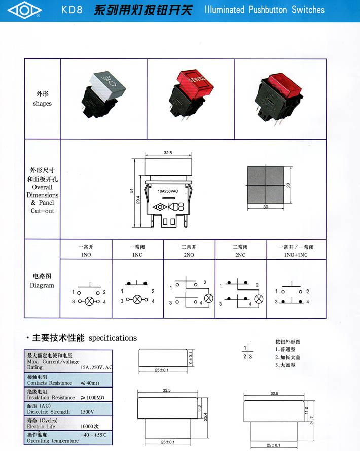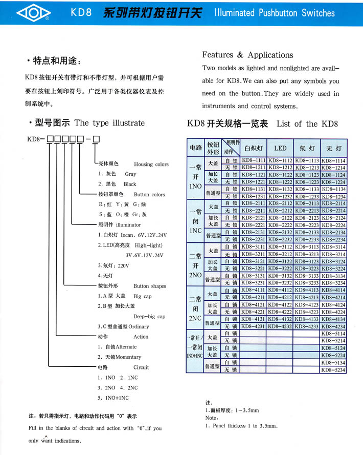 • KD8系列帶燈按鈕開關(guān) 產(chǎn)品型號(hào):KD8系列帶燈按鈕開關(guān)